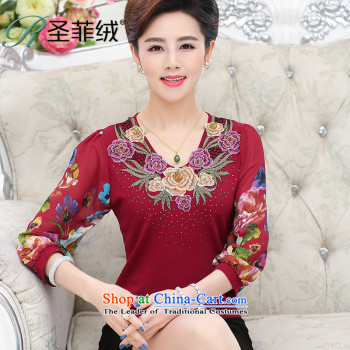 Item 218397 Women Large Size Clothes, Big Size Clothing, Plus Size Coat keyword: Santa Fe 2015. For older women, lint-free with the spring and summer load new chiffon sleeve t-shirt mother knitted thin, middle-aged women clothes red聽, L, Santa Fe wool (shengfeirong) , , , shopping on the Internet