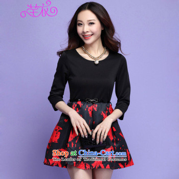 The 2015 autumn new boxed xl girl who video thin stereo decorated lace flowers dresses thick sister leisure lady Foutune of fifth cuff video thin black skirt 135-150 2XL catty