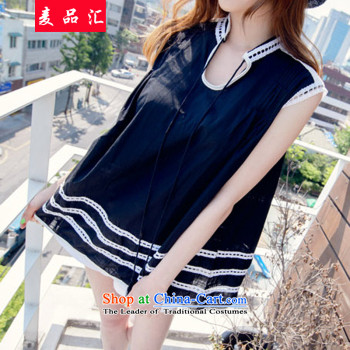 Mr MAK, sinks and indeed XL women 2015 summer new Korean version thick MM cultivating graphics thin loose, long, short-sleeved T shirt 6078 black 5 XL