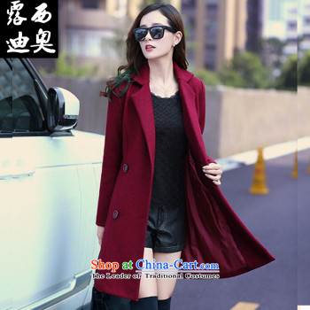 The autumn and winter new Korean version in Sau San long double-wool a wool coat women's gross? 8859 female wine red jacket XL