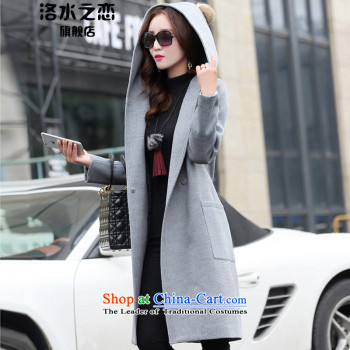 Lucie, gross? Korean Women's jacket coat 2015 autumn and winter new cloak cashmere overcoat, long hair collar cap gross MN1562 coats gray聽XL?