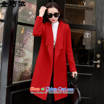 2015 Autumn and winter new PDQC gross female Korean jacket?   Graphics thin a wool coat leisure simple long cardigan jacket girl in red M