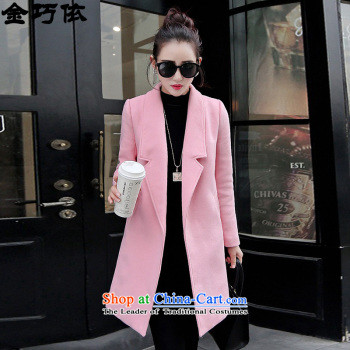 Buie Lin 2015 autumn and winter new Korean Modern graphics in wild thin long long-sleeved jacket coat? female wool pink M