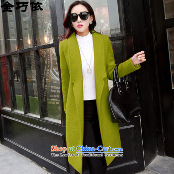 2015 Autumn and winter Zz_ff new Korean fashion, long, thin hair? Graphics Sau San Jacket coat a wool coat female WT5361 GREEN M