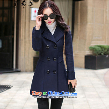 Barbie Xu聽2015 gross is degrees in coats of autumn and winter load new Korean version of long-Nagymaros for Sau San a wool coat navy聽XXL