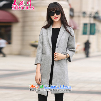 Gloria mini-ya autumn and winter new women in Korean long lapel large Sau San Mao jacket? a wool coat Female Light Gray L