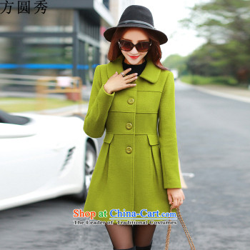 Mangueira 2015 autumn and winter female Korean version of the new video in Sau San wool thin long coats jacket Y8004 gross? green聽L