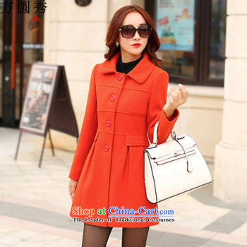 Contee Tarja Halonen of autumn and winter 2015 new women's Korea version in the thin long graphics Sau San Gross Gross for a wool coat 9631 Orange Red聽XL