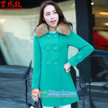 Rafael CORREA Vanina 2015 autumn and winter new gross female Korean jacket? In Long Large Sau San a wool coat Peacock Blue聽XL