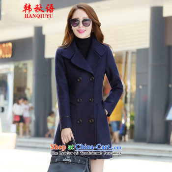 Shi Yi No. 2015 autumn and winter new wool a wool coat female Korean pure colors plus cotton thin, long, video gross a wool coat female jacket Tibetan Blue M