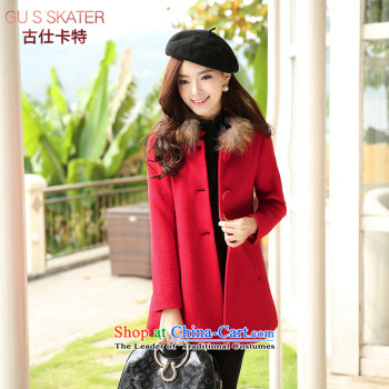 聽2015 WINTER again swordmakers gross female Korean jacket?? coats female breast gross video thin temperament in reverse collar long red聽XL