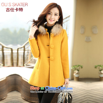 Thus Chu YFL headquarters women 2015 new autumn and winter coats female Autumn and Winter Sweater,high-end woolen coat, Water Sable Hair collar windbreaker gross coats orange聽M?