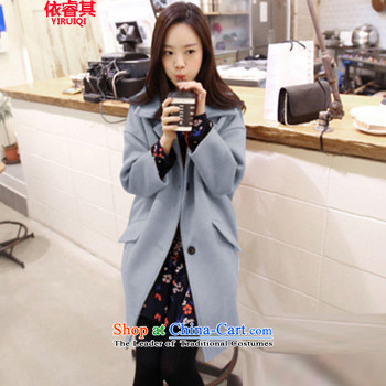 Shi Yi No. 2015 autumn and winter new wool a wool coat female Korean pure colors plus cotton thin, long, video gross a wool coat female jacket Tibetan Blue聽M