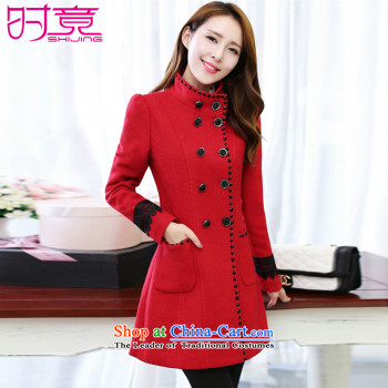Item 224750 Women Large Size Clothes, Big Size Clothing, Plus Size Coat keyword: Even聽with the new 2015 Autumn Korean Antique Lace double-collar girls are decorated in gross W8917 aqua-blue coat?聽, L, even (SHIJING) , , , shopping on the Internet