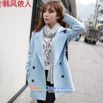 Doris Cheuk-blue 2015 autumn and winter new Korean female jacket is thick hair, long hair washable wool a wool coat won the RED M