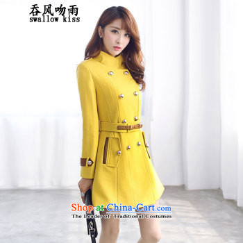 Night table聽2015 autumn and winter wind new coats jacket in cultivating the so long coats female S151 gross? Yellow聽XL
