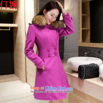 Chor Yuen Chien   autumn 2015 new Korean fashion Sau San long wool coat violet XXL?