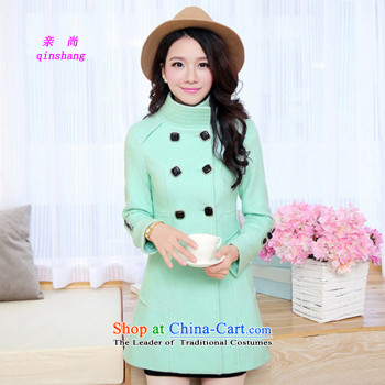 Goodwill is also Fall_Winter Collections 2015 new Korean version of thin temperament, gross? jacket long-ni-coats cocoon T831 GREEN聽M