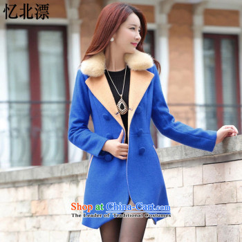 Pretty shadow gross flows in female coat? Long 2015 autumn and winter new Korean female jacket is   Gross Blue M