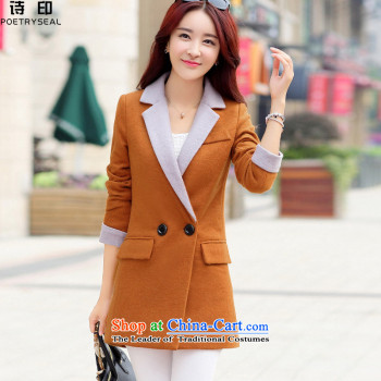 El Boothroyd 2015 winter clothing new Korean lapel jacket in long coats female 6581017772 caramel S