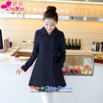 Charlene Choi Tysan聽2015 Korean version of large numbers of ladies autumn and winter new fat mm to cloak gross lapel jacket is warm, double-a wool coat Navy Blue聽2XL