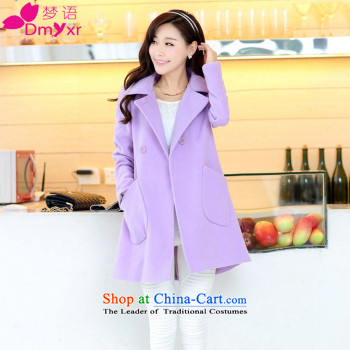 Oehe 2015 winter clothing new Korean version in Sau San long jacket, stylish girl video thin lapel long-sleeved gross? coats purple XL