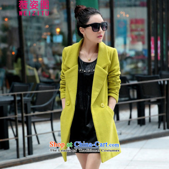 Small Flower of 2015 autumn and winter coats gross New girl? long jacket female聽_N1011 Sau San聽Yellow聽  XL