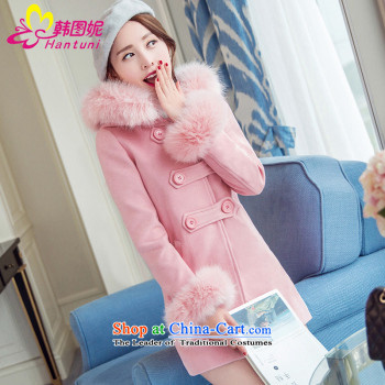 2015 Winter Olympics to Tian, Korean large relaxd thick wool coat is Ms. pink sweet in long cap jacket female commercial gross? toner聽M