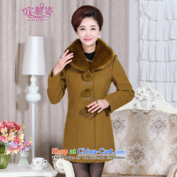 Yeon-ju Fall_Winter Collections Korean version of large numbers of ladies jacket cashmere overcoat so gross thick mm thick, Hin thin, sister to thick xl Yellow聽4XL