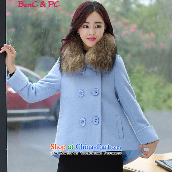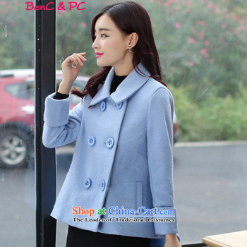 Youth 2015 autumn and winter clothing so the new Korean version of Sau San a thin coat graphics gross coats female Blue聽M?