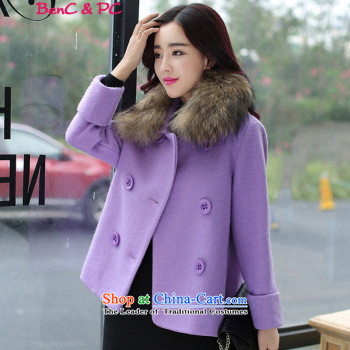 Therefore, 2015 winter new Cheung woolen coat stylish and elegant fox gross collar short sleeves light luxury atmosphere with a light purple coat gross聽155_80A?