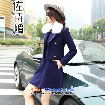 Shi Yi No. 2015 autumn and winter new wool a wool coat female Korean pure colors plus cotton thin, long, video gross a wool coat female jacket Tibetan Blue聽M