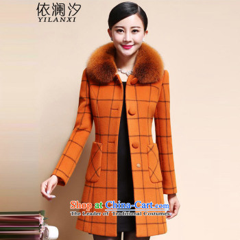 Meath Yang original geese in long hair? 2015 winter new products long-sleeved blouses and woolen coat gross jacket orange S?