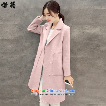 Christy Love 2015 autumn and winter new lapel temperament?   in gross jacket long a wool coat female D3082 pink聽M pre-sale, November 5_