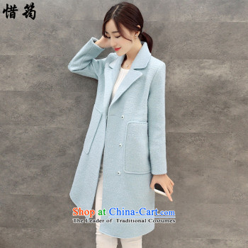 Mrs and cashmere overcoat female woolen coat girl聽in the new winter 2015 long coats gross? For coats jacket fox gross blue聽 XL