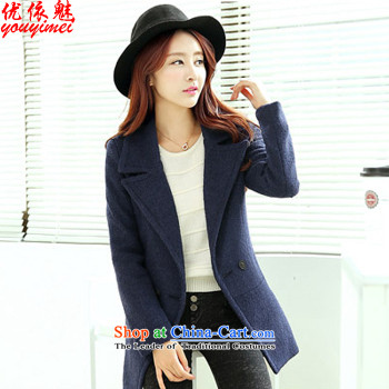 The US's聽 2015 autumn and winter new Korean fashion Sau San? What gross coats wool coat female Dark Blue聽M