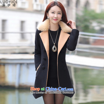 About the New 2015, hundreds of autumn and winter load sense of gross coats female Korean version of this stylish collar zip jacket, black short M