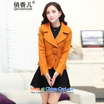 Even the聽new 2015 winter clothing Korean short of Ms. Sau San single row detained small incense culture quality gross W8986 coats yellow-so gross for聽M