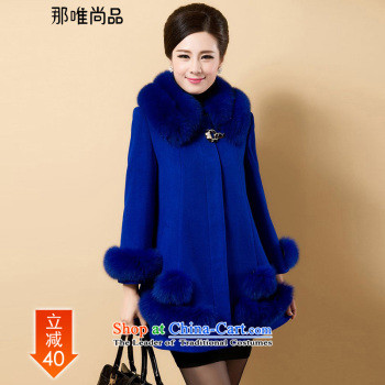 Pull economy-聽2015 autumn and winter new women's winter coats female hair_??? gross cloak jacket overcoat聽8016聽Royal Blue聽M