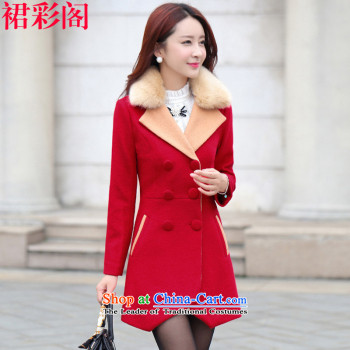 Kim Man sa聽2015 autumn and winter new Korean girl in gross? jacket long coats gross?_ Gross _with red聽L