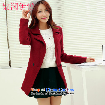 The world of Kam Yuet 2015 new female elegance Korean leisure gross a wind jacket color navy OL commuter is simple and stylish atmosphere long coats聽5896聽wine red聽XXL