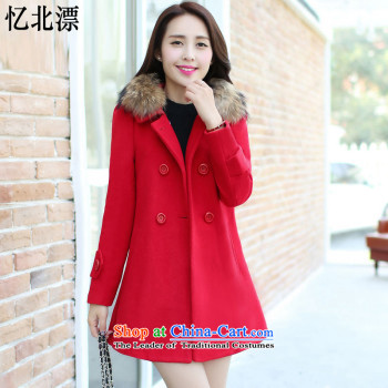 Recalling that the 2015 Autumn and Winter North drift-new Korean female jacket is thick hair, long, long-sleeved lapel Sau San a wool coat female 693 Red聽2XL
