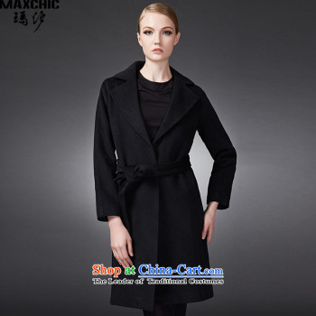 Marguerite Hsichih maxchic 2015 Ms. autumn and winter clothing for long-sleeved wool rib cage-Tether in long coats delivers gross? female 13672 black聽L