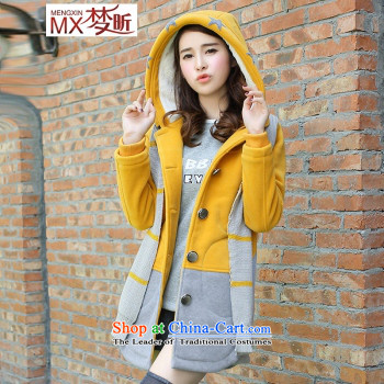 Dream Girl Xin winter clothing in 2015 new long hair? Jacket Korea Sau San edition of secondary school students is a sweet coats larger female Yellow聽XL