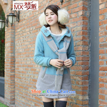Lei Yu Hsuan larger women 2015 autumn and winter new Korean edition of the sportswear thick wool sweater stylish cartoon picture students Sau San video thin leisure wears the girl blue聽XL
