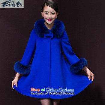 The World 2015 autumn and winter clothing stores new women's stylish high-emulation Fox for high-end in gross long cashmere cloak long-sleeved gross overcoats? Blue M world yi compartment (tianxiayicang) , , , shopping on the Internet