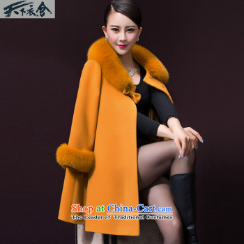Receive ya 2015 autumn and winter new cashmere overcoat, long, but the fox washable wool coat is gross 6080 Yellow M