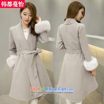 Contee Tarja Halonen of autumn and winter 2015 New Women Korean Fox gross aristocratic small incense for the wind in Sau San long a wool coat jacket 358_ leather toner L