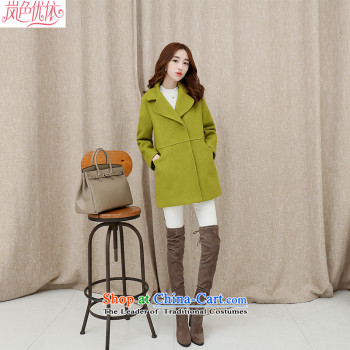 Optimize the 2015 autumn and winter new larger female Stylish coat female Korean citizenry sweet candy colored elegant in Sau San long thick a wool coat female 3XL green