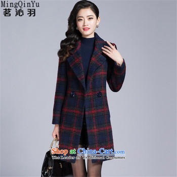 Piao lover, winter 2015 new gross jacket female thick in this long and Stylish coat it grid Sau San female Foutune of video thin navy blue M
